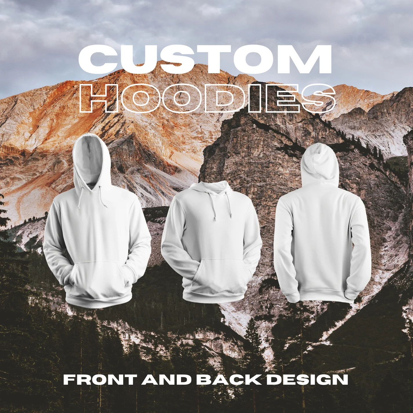 Custom Hoodie with a Front OR back design. If you’re wanting a Hoodie with both we have another listing for it.