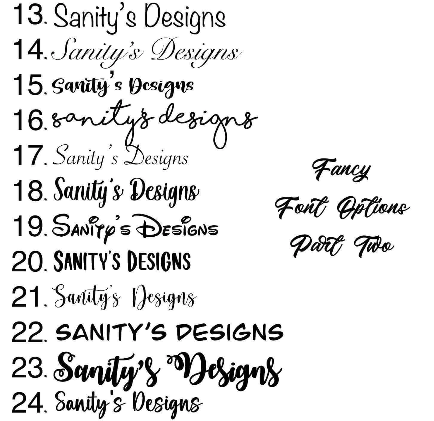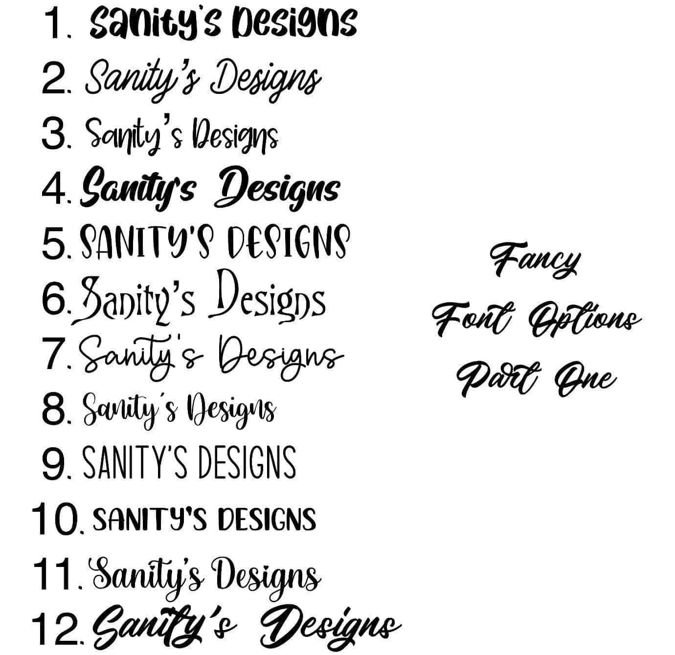 Scroll down to enter your customizations! We have more fonts than are listed, if you have something specific in mind that you don’t see, please reach out to us!