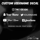Custom decal with your business username/name. White shows up best in windows. If you’d like a different colour just let us know in the custom text box where you’ll put the name you’d like on your decal.