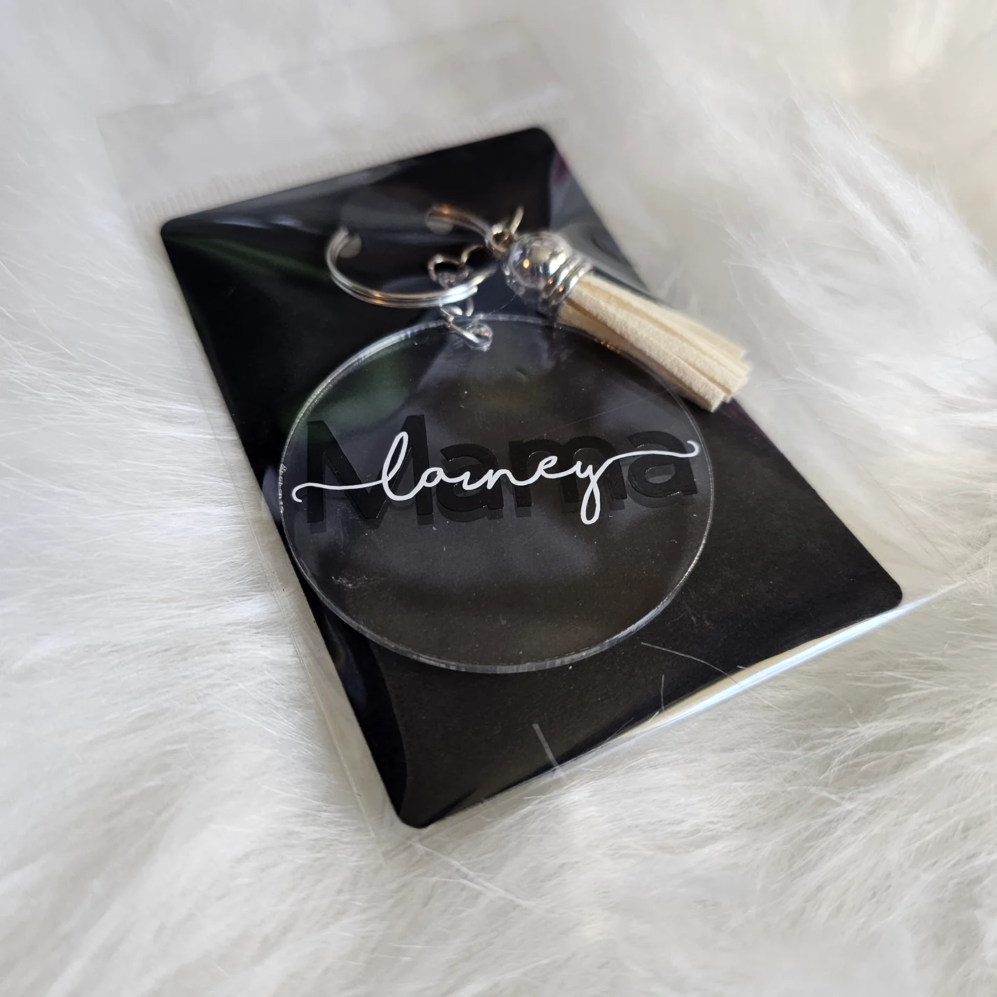 Introducing our special custom-made 2-inch Mama acrylic keychain! This beautiful design allows you to choose between Mama, Grama, Oma, etc., and includes the personalization of one child’s name. Show off your love and pride for your family with this unique keychain. Perfect for a gift or as a personal accessory!